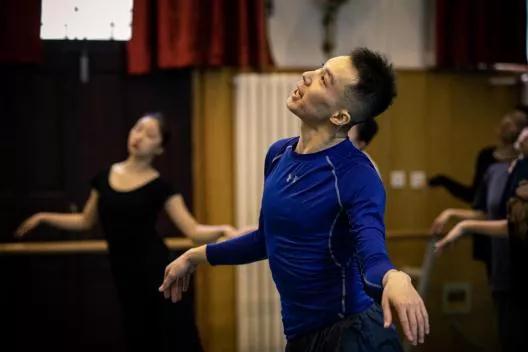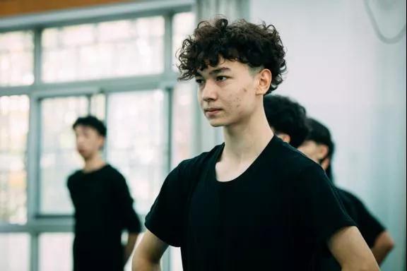作品《孔》是谭钧元在大四最后一年的“桃李杯”作品。动作元素借用了提线木偶里的点线形态,创作灵感取材于蒙面僧人(又称“盲僧”)。他的一生只能靠听觉去悟道,用耳朵和四肢去感知着师傅所说的万物。