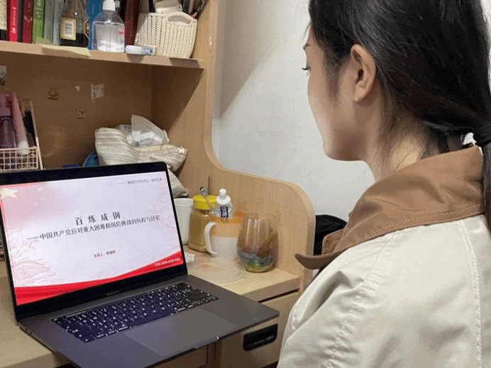 通过线上的学习,我们看到在历史滚滚向前的车轮中,先进的中国共产党应运而生。她带领着中国走过风风雨雨,跨越坎坎坷坷。我们不仅要铭记党的光辉业绩,更重要的是聚焦当下,作为新世纪的青年,我们肩负党和人民的重托,建设祖国的重任已经责无旁贷的落到了我们这一代人肩上,我们必须励精图治、奋发图强,将我们的祖国建设的更加繁荣昌盛,让中华民族拥有更加美好、辉煌的明天!