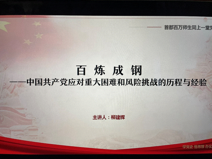 4月28日下午,中央民族大学威廉希尔williamhill官方网站组织学生共同观看了“首都百万师生同上一堂党史课”系列网络公开课。学习的党课主题为“百炼成钢——中国共产党应对重大困难和风险挑战的历程与经验”。主讲人为中共中央党校(国家行政学院)教授、博士生导师柳建辉。