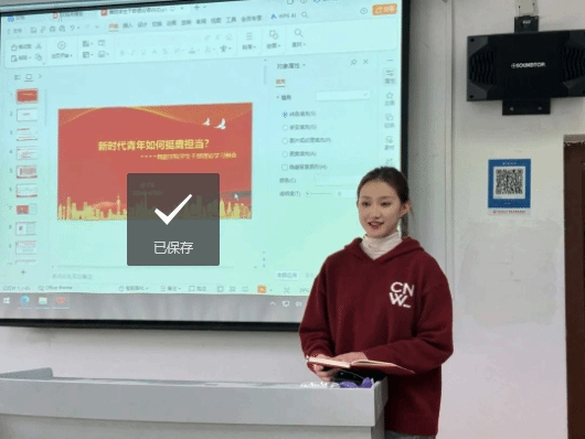 最后,由曾任我院团委副书记、2025届支教团成员、青马班成员学员张彧萱进行了宣讲。她表示,作为学生干部,我们不仅要深入研习党的理论知识,还要提升自身综合能力,要主动扎根于人民群众之中,积极融入生活,从中汲取养分、积累经验。同时,以身作则、敢为人先、吃苦耐劳也是学生干部应当秉持的重要品质,要在日常学习与生活中发挥模范带头作用,以实际行动践行责任与担当 。