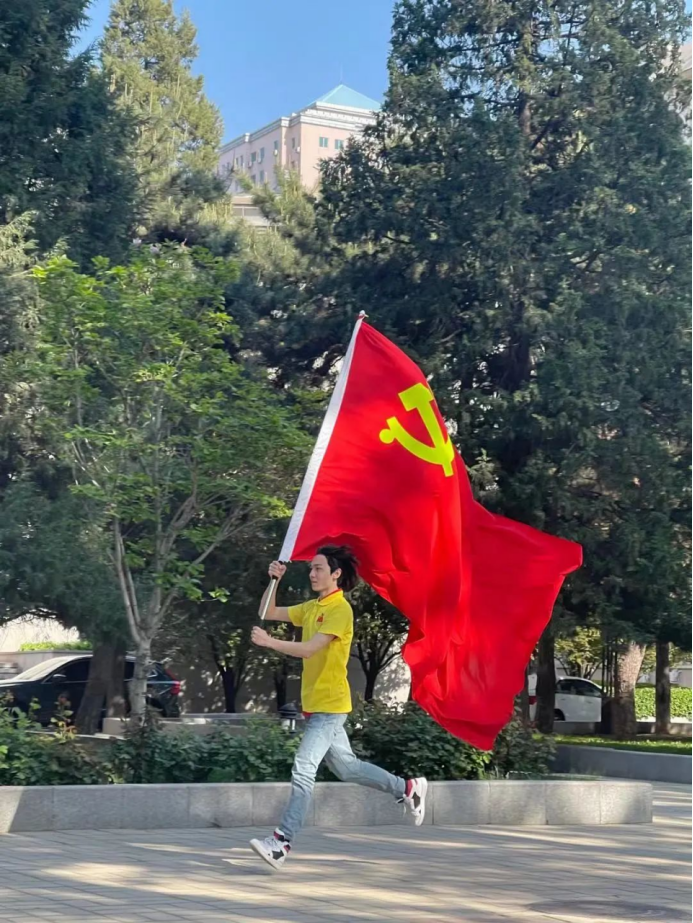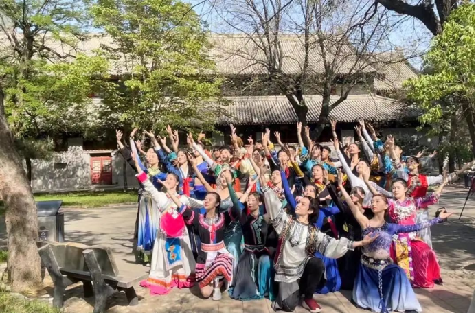 我们穿着少数民族服装参加本次拍摄,很荣幸也很开心。拍摄过程中,耳边一直围绕⟪没有共产党就没有新中国⟫的乐曲,让我情不自禁地乘着歌声思绪飞扬。