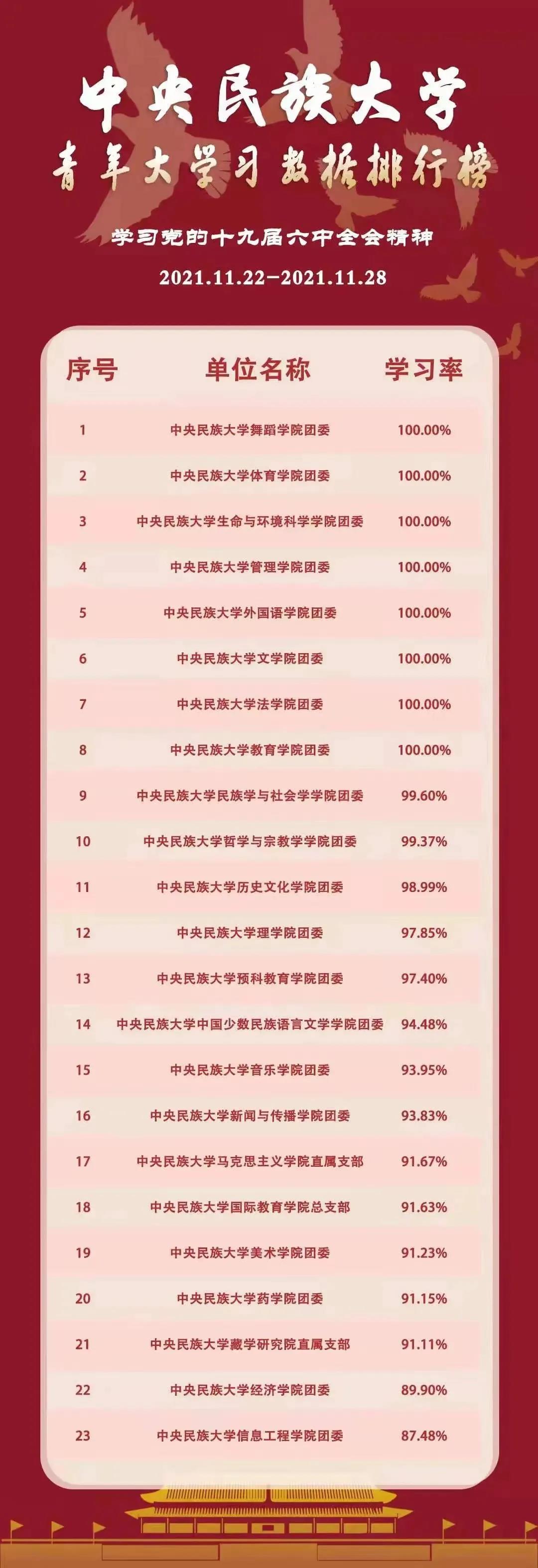 在过去的两周里,威廉希尔williamhill官方网站的同学们积极参与青年大学习网上主题团课,团学参与率均为100%位列第一,值得表扬,希望各团支部继续保持。