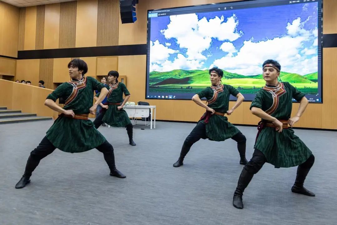本期讲座中,两位老师分别讲解了藏族、蒙古族舞蹈文化背景和风格特点,丛帅帅老师主要讲授了藏族舞蹈的种类和分布,并对“堆谐”“弦子”“热巴”三种不同的舞蹈风格进行了详细的讲解和赏析。铁木尔老师带领大家在不同风格的蒙古族舞蹈中体会蒙古族人民的积极向上、热情豪迈及蒙古族舞蹈的悠然自得、刚柔并济。让大家在讲座中能够更好地理解“各美其美,美美与共”的内涵,构筑中华民族共有精神家园,积极培育铸牢中华民族共同体意识。