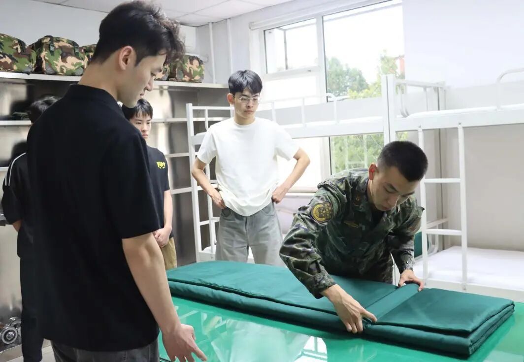走进军营宿舍,整齐划一的内务环境、棱角分明的“豆腐块”被子,展现出军人严谨细致的优良作风。支部成员在观摩和实践中,体会到纪律与规范的重要性,于细微处感悟军人精神的深刻内涵。