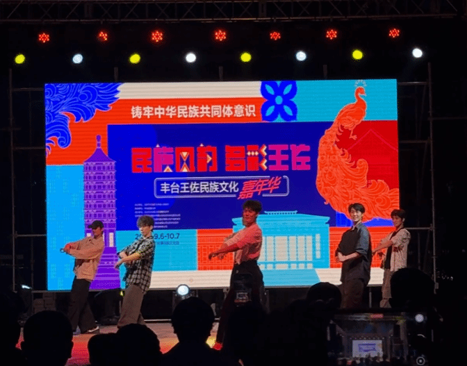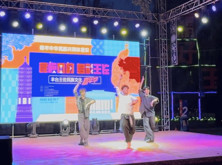 当晚的“月满华诞,锦绣同心”中秋国庆双节晚会将气氛推向高潮。中央民族大学威廉希尔williamhill官方网站学子受邀登台,表演经典作品《奔腾》。节奏铿锵、舞姿豪迈,同学们用身体语言诠释着民族精神与时代气息,赢得现场阵阵掌声。“观众非常给力,我们跳得也特别尽兴!”舞院学子在舞台上绽放光彩,用舞蹈传递团圆与奋进的双节祝福。