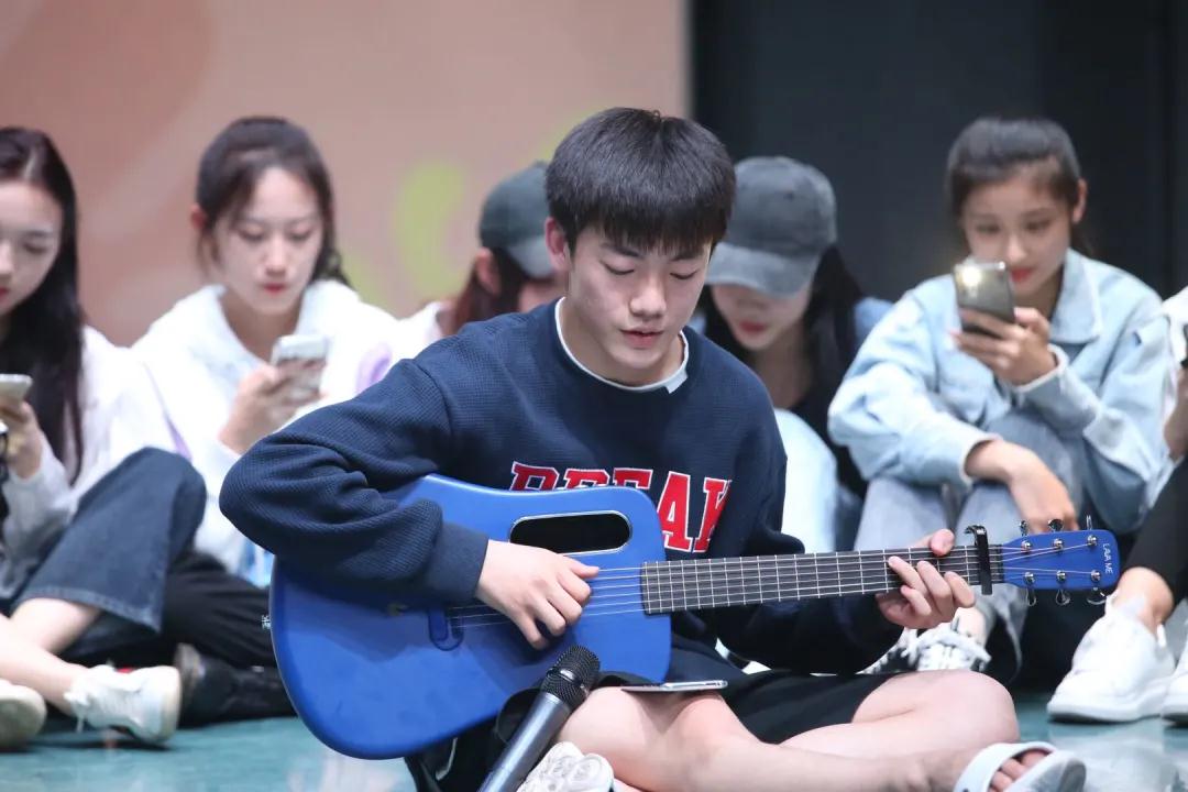 2021级教育班同学带来的吉他弹唱,一个个音符悄然流淌,感动所有人的心灵。