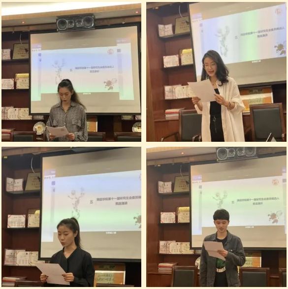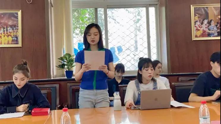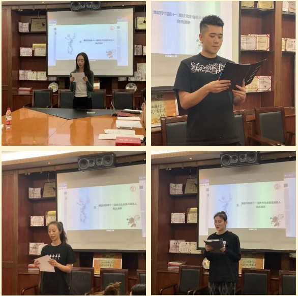 此次会议分三部分。首先,第十届研究生会主席郭馨泽进行年度工作汇报。她汇报了过去一年研会各部门的工作情况与成果,总结了自己过去一年的工作,对研究生会的未来发展提出了个人建议与期望。