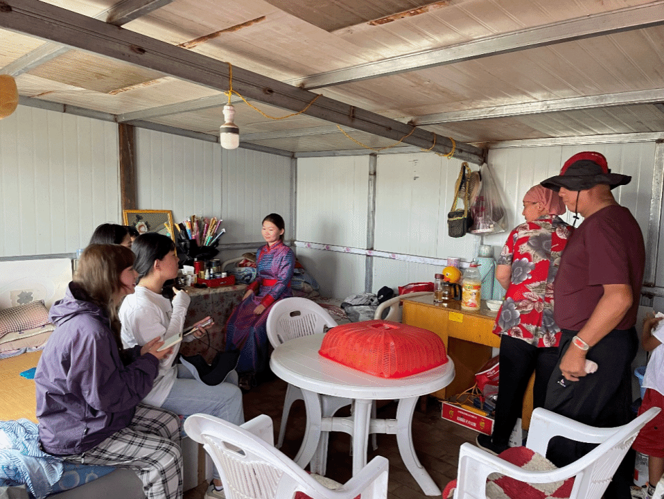 到祖国边疆的最前沿、最深处,走到生活在边疆的人民群众中间。铸牢中华民族共同体意识,以校训“美美与共,知行合一”为田野实践准则,“为了‘疆’来”调研团在交通要塞——正蓝旗桑根达来镇展开入户走访实地调研,进入牧民劳作地域,摸排商户人口流动过程,寻找传统生计方式与现代商业的碰撞,探索交通对边疆发展的影响,真正做到听民意、体民情,与边疆人民同吃同住同劳动,践行老一辈民族学学者的治学精神。