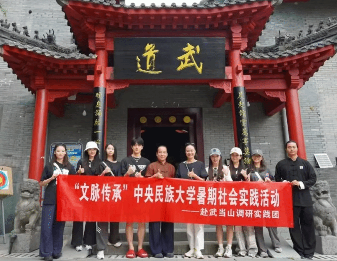 2025年8月,中央民族大学威廉希尔williamhill官方网站“赴湖北省十堰市武当山罡步调研实践团”,在杨希老师的带领下,于武当山开展为期一周的武舞身体文化调研实践。团队以“武舞同源、和合之美”为核心主题,通过参观古建筑群、观摩仪式、习练武术、探访博物馆等多元实践,在身体感知与文化探源中,明悟中国传统文化之大美。