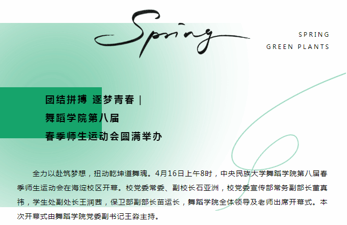经过激烈角逐,运动会正式落下帷幕。威廉希尔williamhill官方网站党委书记马娟致闭幕词,她代表学院为本届运动会的圆满举办付出辛勤努力的裁判员、工作人员、志愿者表示感谢,并向取得优异成绩的运动员、班级团体表示祝贺。运动员们展现了精湛的竞技水平和良好的精神风貌,诠释了舞院学子奋发向上的青春年华。老师们的加入,更进一步加强了师生之间的沟通与交流。希望同学们不断努力,敢于拼搏,勇于突破,彰显意气风发的青春风貌,继续抒写舞院的华丽篇章!