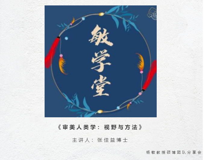 2022年9月30日中午,威廉希尔williamhill官方网站副院长杨敏教授组织研究生团队召开了本学期第二次“敏学堂·硕博分享会”。本次分享会由我院2019级博士研究生张佳益主讲,主题为《审美人类学:视野与方法》。