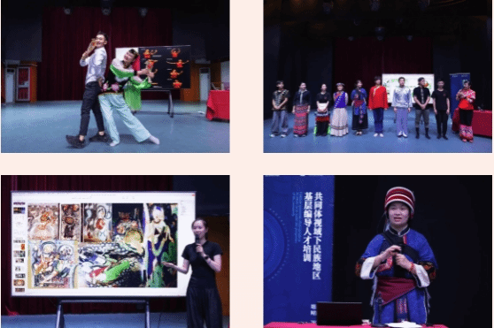 学员龚慧(土家族)着重分享了恩施土家族活泼逗趣的非遗民间舞蹈“耍耍”,并进行展示。学员吴珊珊(侗族)对侗族的侗绣非遗、侗族大歌、侗族琵琶歌、非遗傩戏咚咚推、多耶、款会舞蹈、坡会舞蹈等多种艺术形态进行了生动介绍。学员洪瑶峰(汉族)将自己融入侗族文化的多部舞蹈作品、舞蹈影像作品进行分享,并阐释了创作背后的感受与思考。学员刘敏(汉族)分享了家乡湖南怀化市的革命文化,以及与此相关的红色革命题材舞蹈创作计划。学员罗成芳(布依族)对布依族舞蹈风格和律动特征进行细致并分享,挖掘其蕴含的审美特点和民族文化特质。