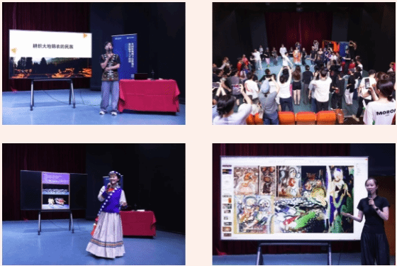 第二天的分享,由苏娅菲副教授主持开场,学员何鹏担任串讲人,并有21名来自不同地区的学员共同完成。其中包括藏族、羌族,彝族、壮族,蒙古族、鄂伦春族、鄂温克族等民族地区,涉及青海,广西,四川,重庆,内蒙古,黑龙江等多个城市的基层创作者,一同分享在民族地区的所见所感和文化风俗。