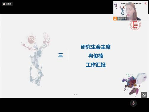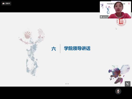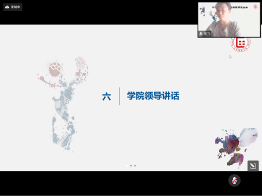 学院党委副书记王淼首先对于参加此次线上会议的同学们所做的充分准备予以表扬,同时肯定了大家这一年的工作。她代表学院党委向研究生会所有成员表示热烈的祝贺!同时对第十一届研究生会为学院的各项工作做出的贡献,表示衷心感谢!她认为,所有的成绩离不开团队的共同努力,学生干部在工作中锻炼了心理素质,增强了处事本领,在学生群体中起到模范带头作用。