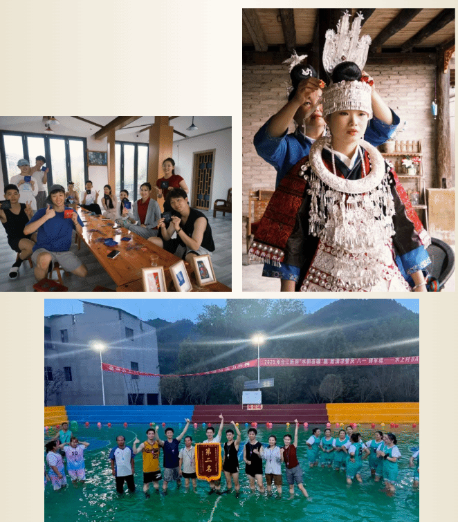 8月9-10日,实践团先赴黔东南州图书馆查阅文献、夯实非遗研究理论基础,再走进台江县芳佤苗族文化博物馆,近距离触摸苗族盛装,解锁服饰纹样中的民族记忆。师生重点学习第五批贵州省级非遗“踩鼓舞”,初步掌握“水鼓舞”技艺,感受苗族舞蹈的蓬勃生命力。课后走访偏寨红色旧址与姊妹广场、体验苗绣,间隙参与“水上村BA”,深度融入当地生活。